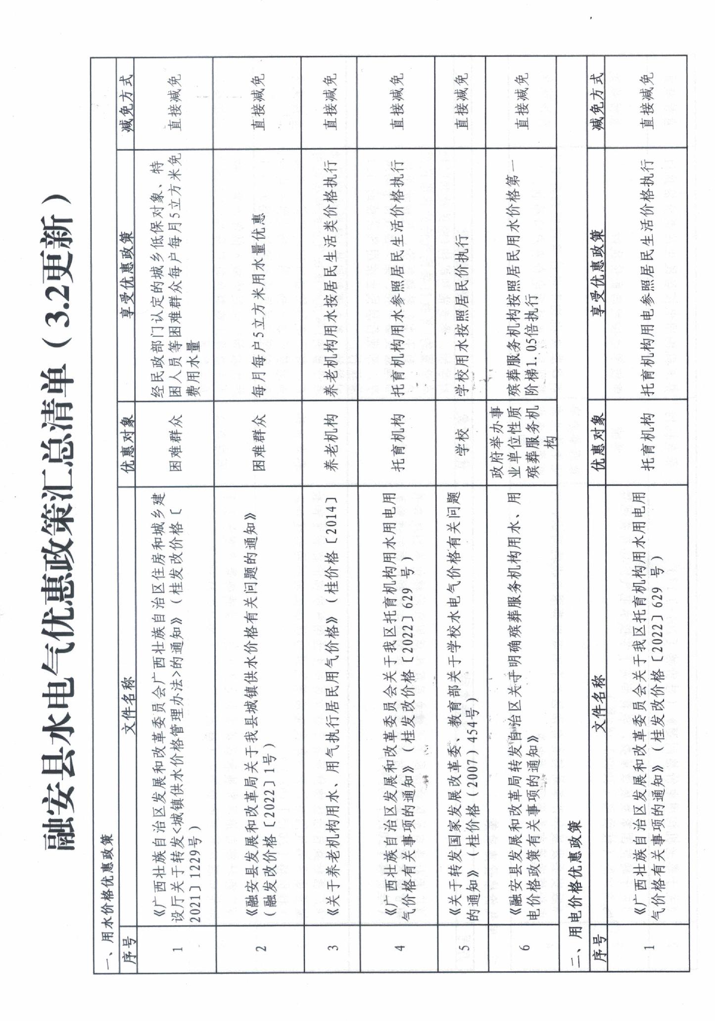更新融安县水电气价格优惠政策汇编