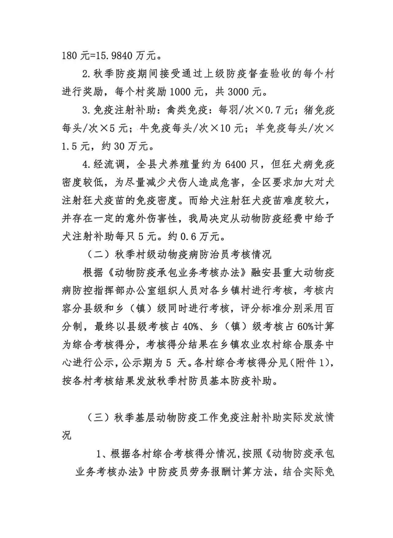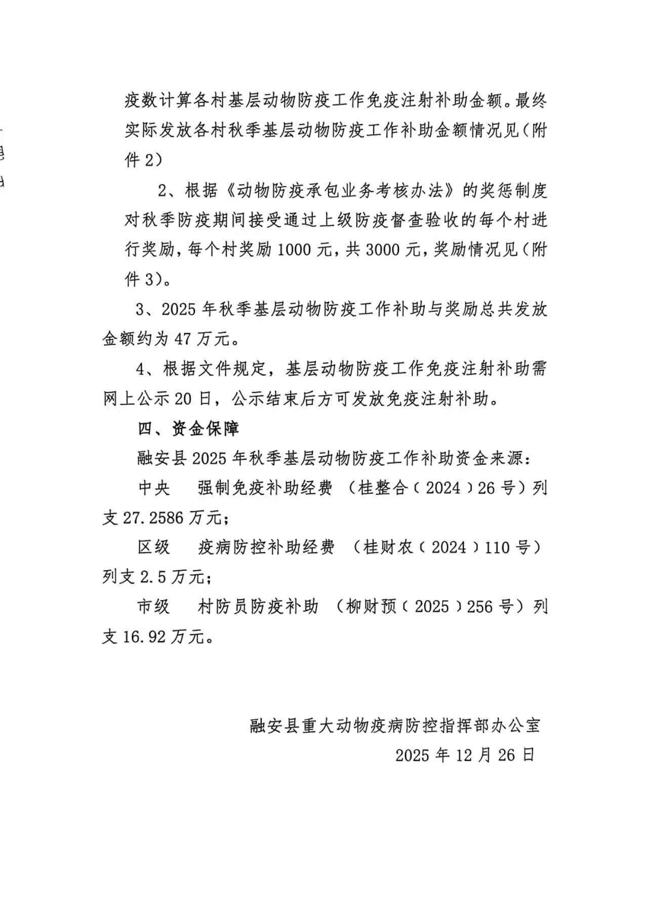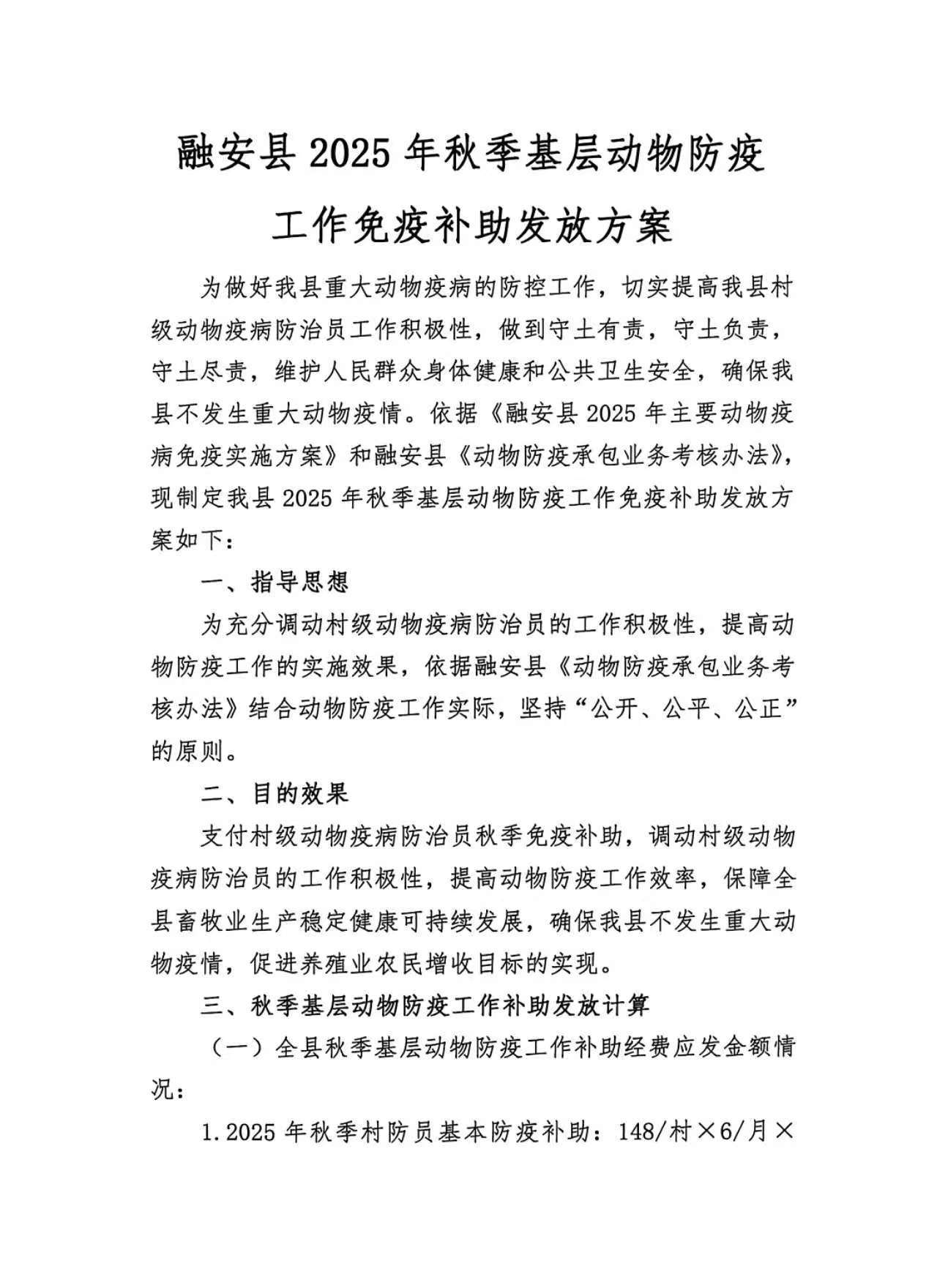 融安县2025年秋季基层动物防疫工作免疫补助发放方案