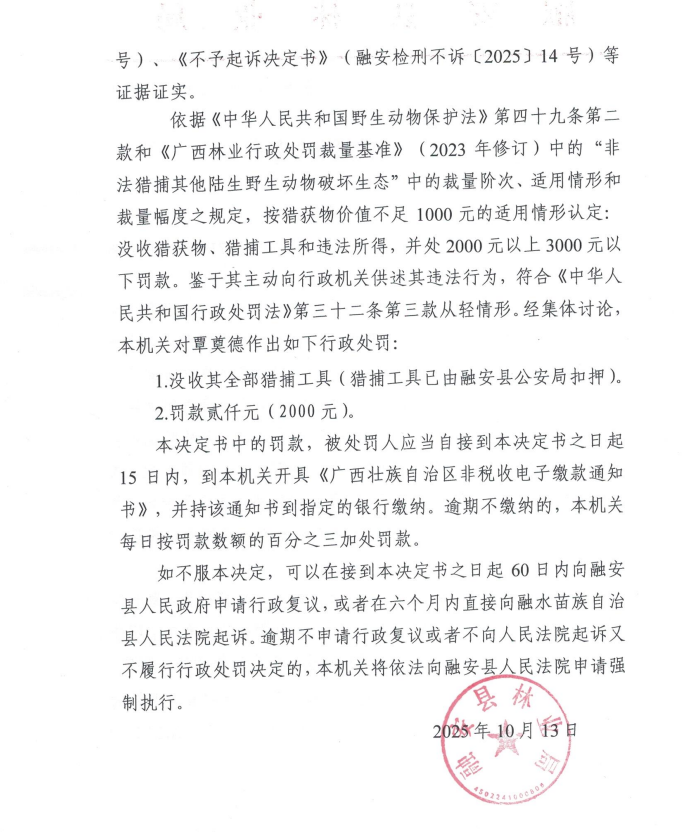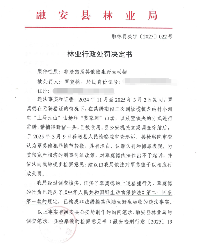 融安县林业局林业行政处罚决定书 融林罚决字〔2025〕022号