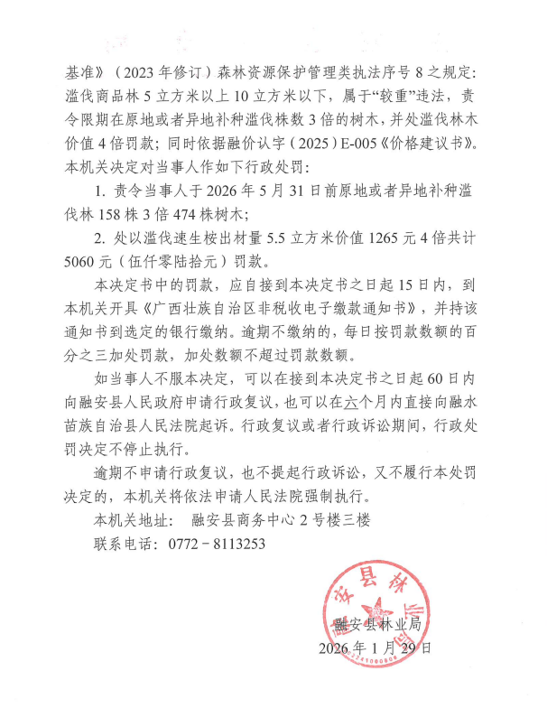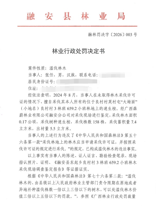 融安县林业局 林业行政处罚决定书 融林罚决字〔2026〕003号