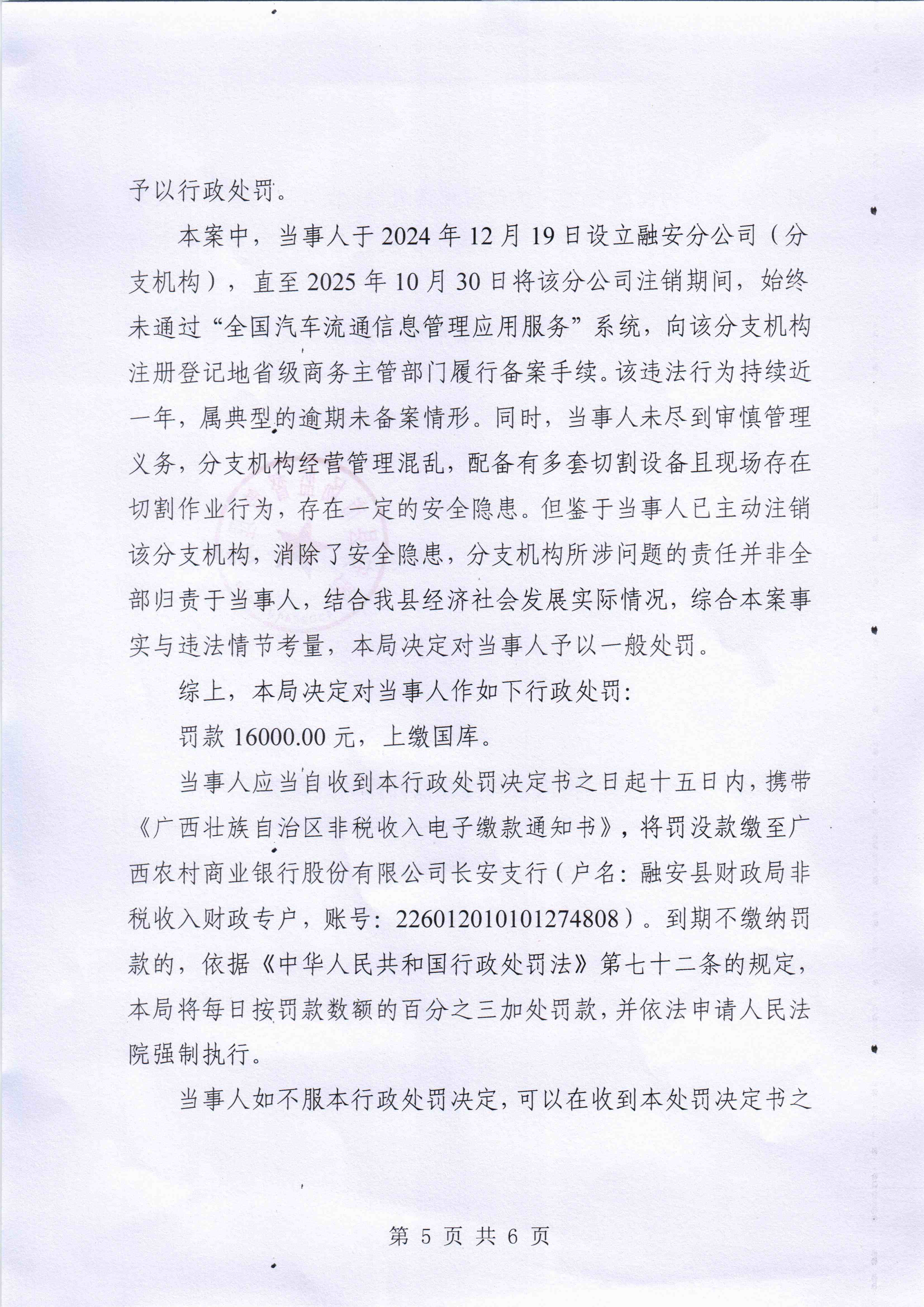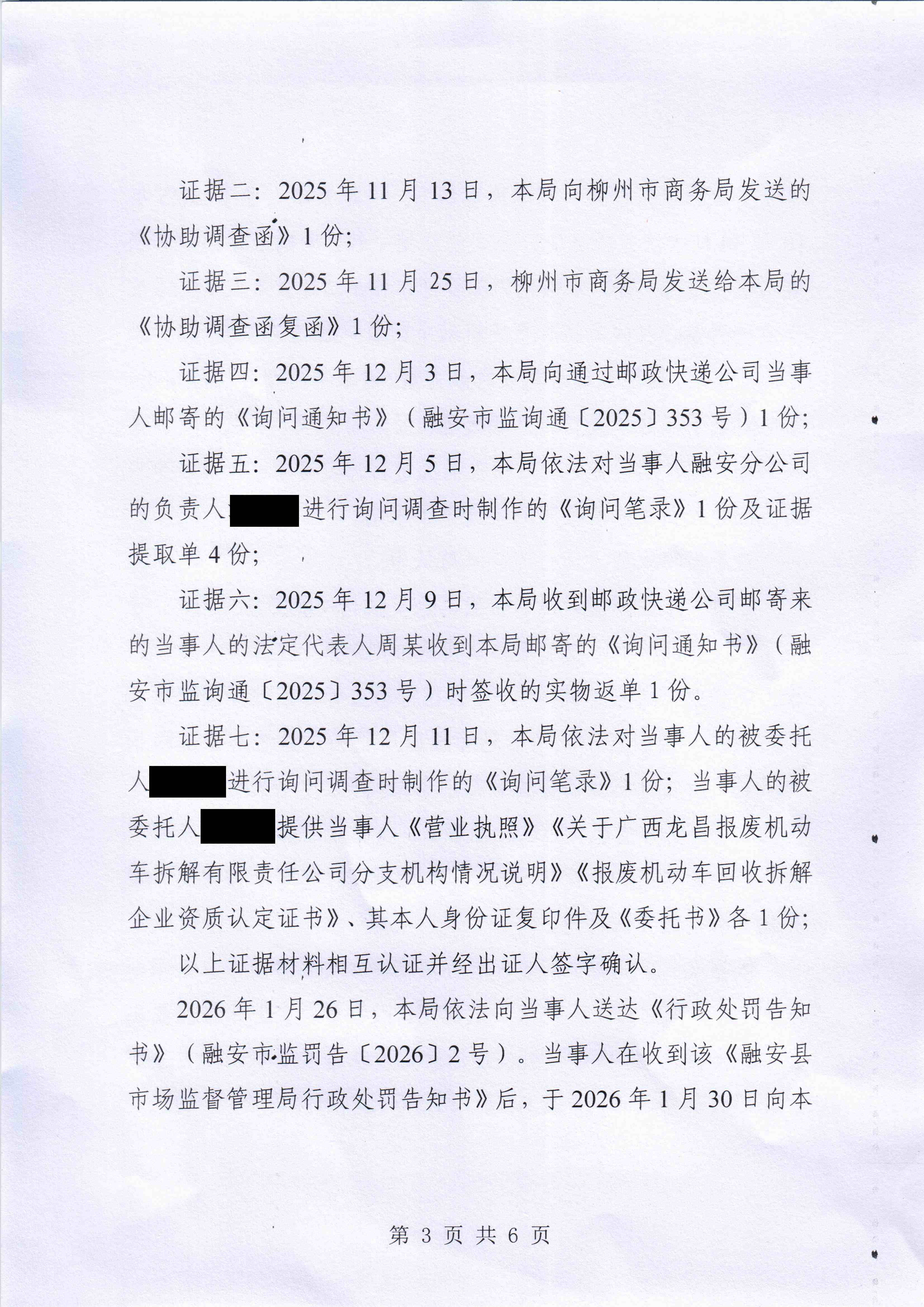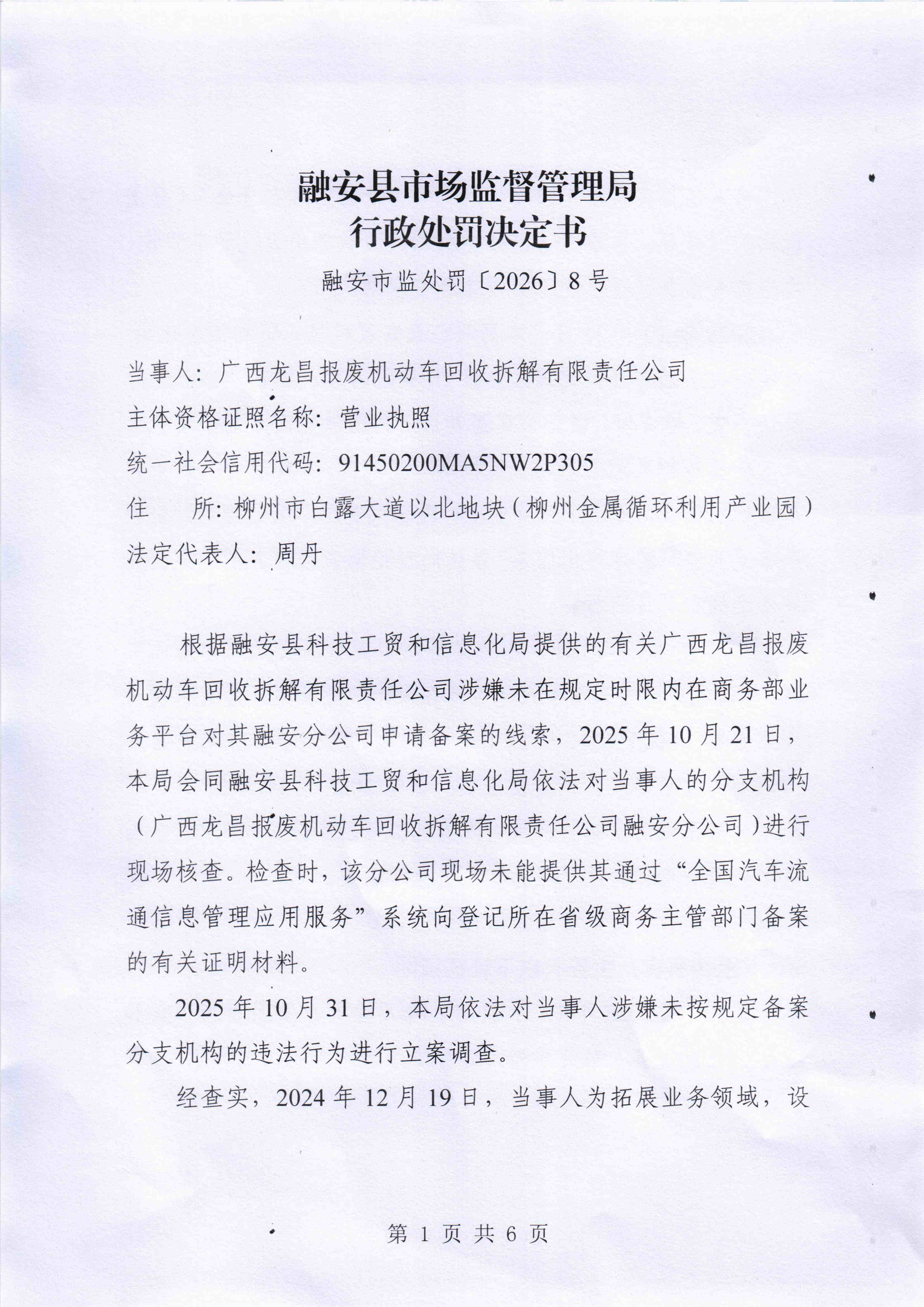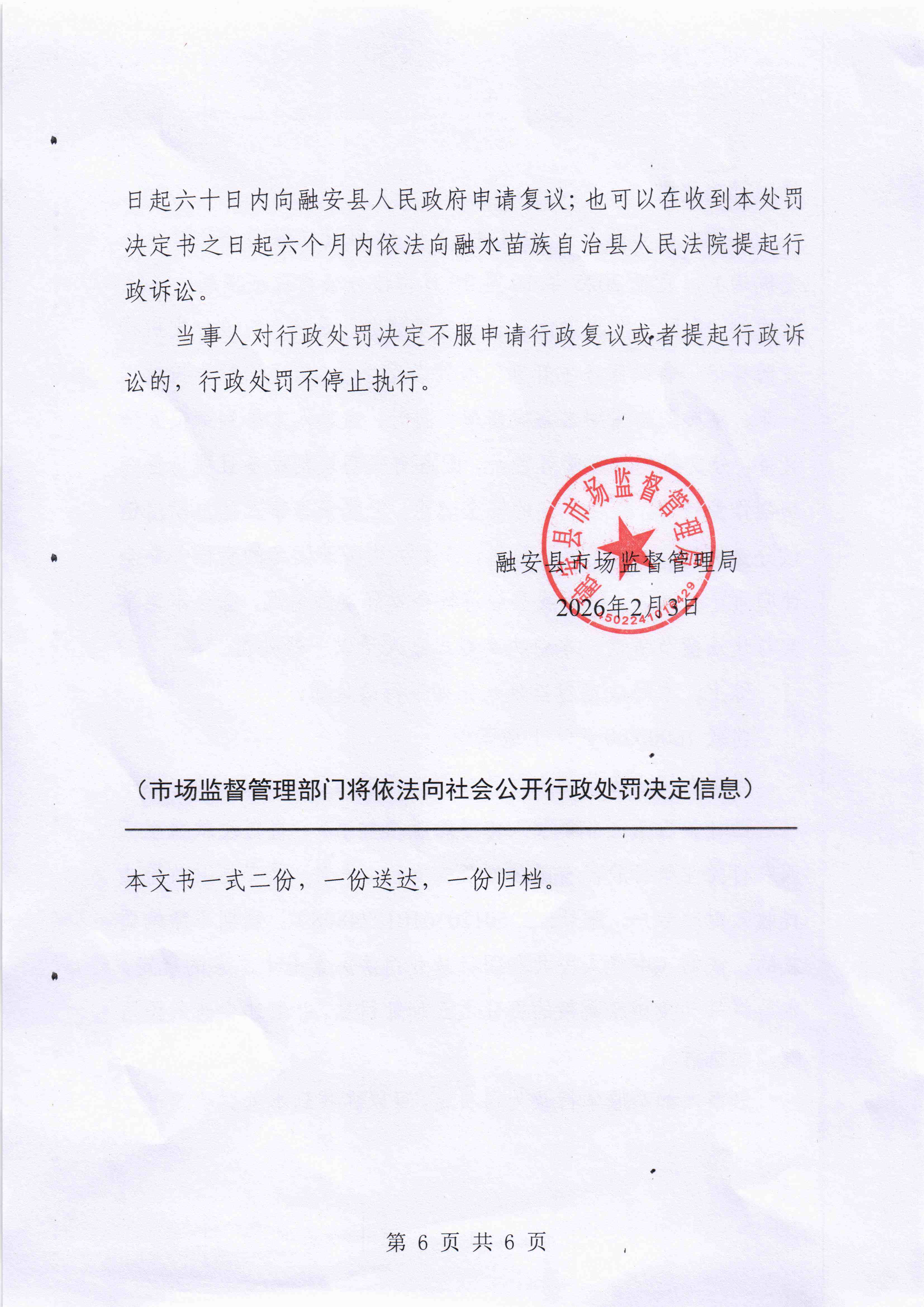 融安县市场监督管理局 行政处罚决定书融安市监处罚〔2026〕8号