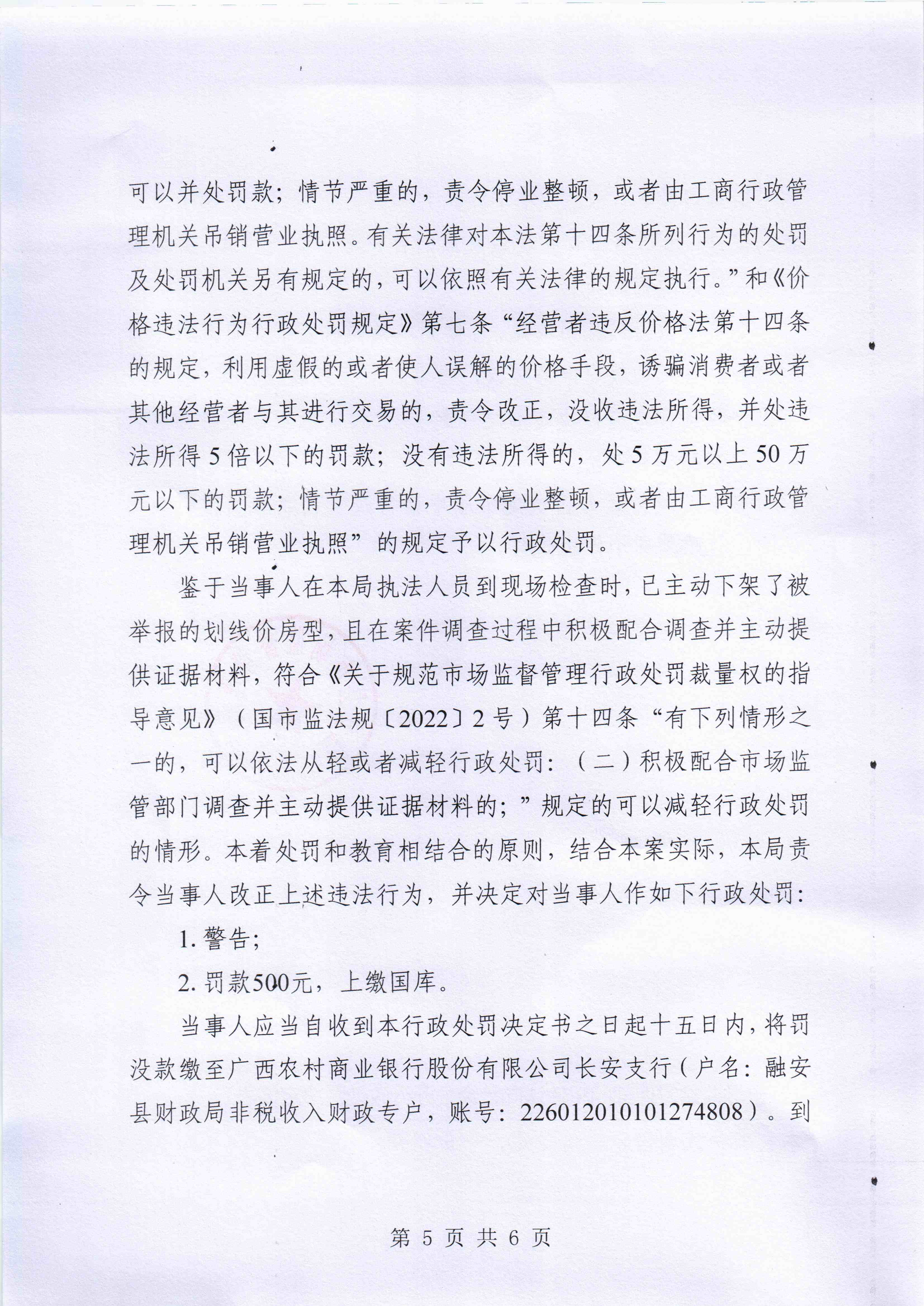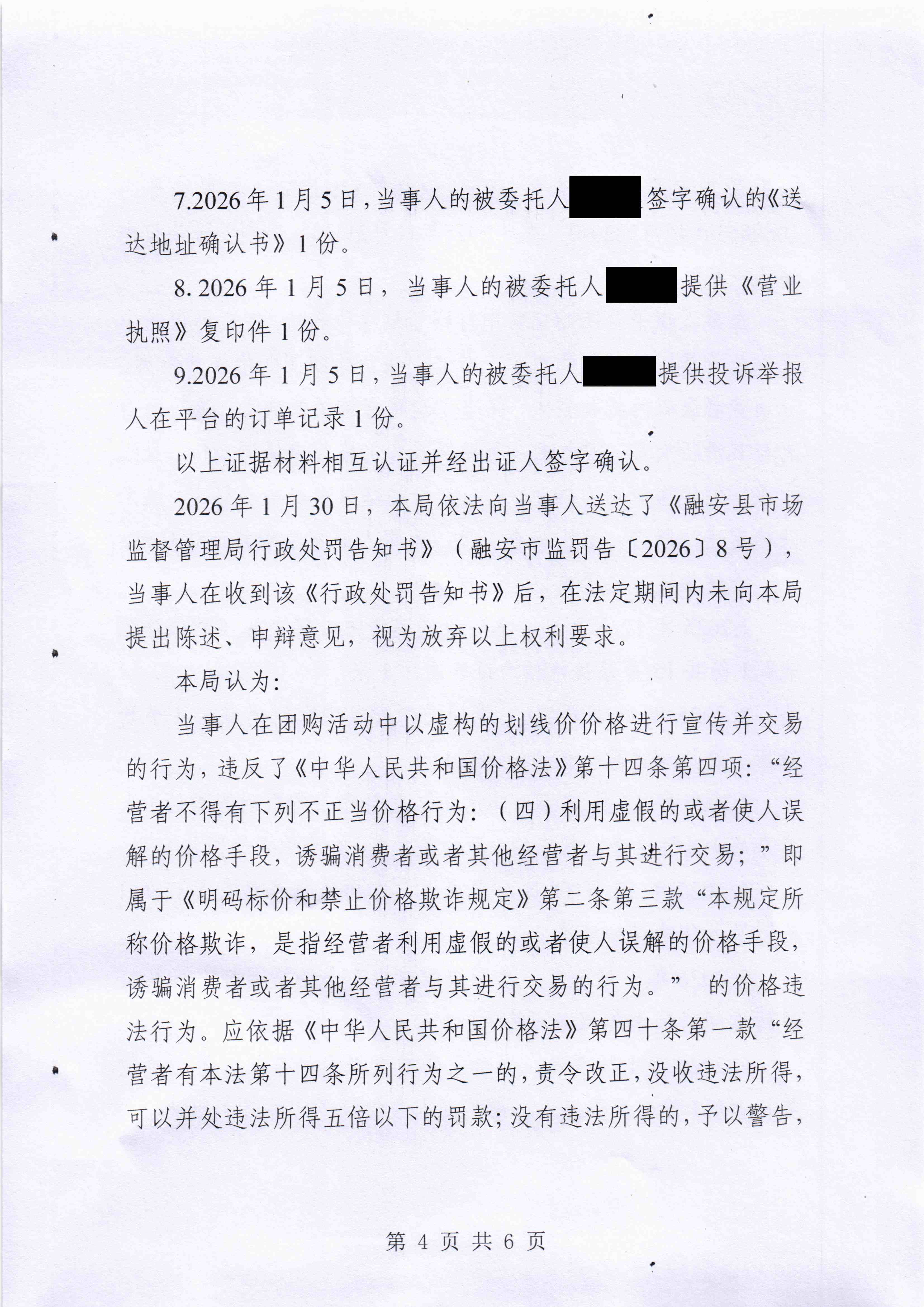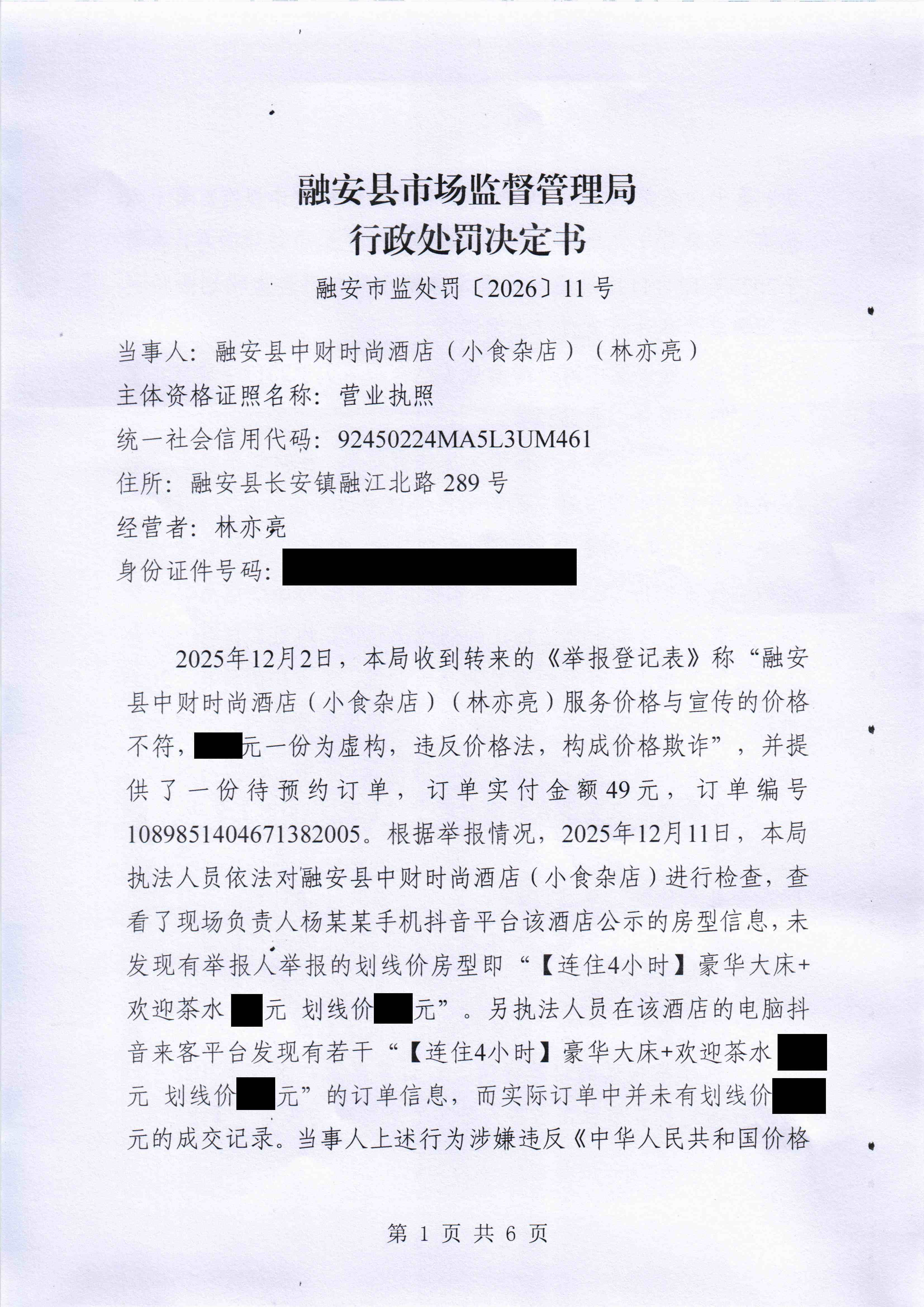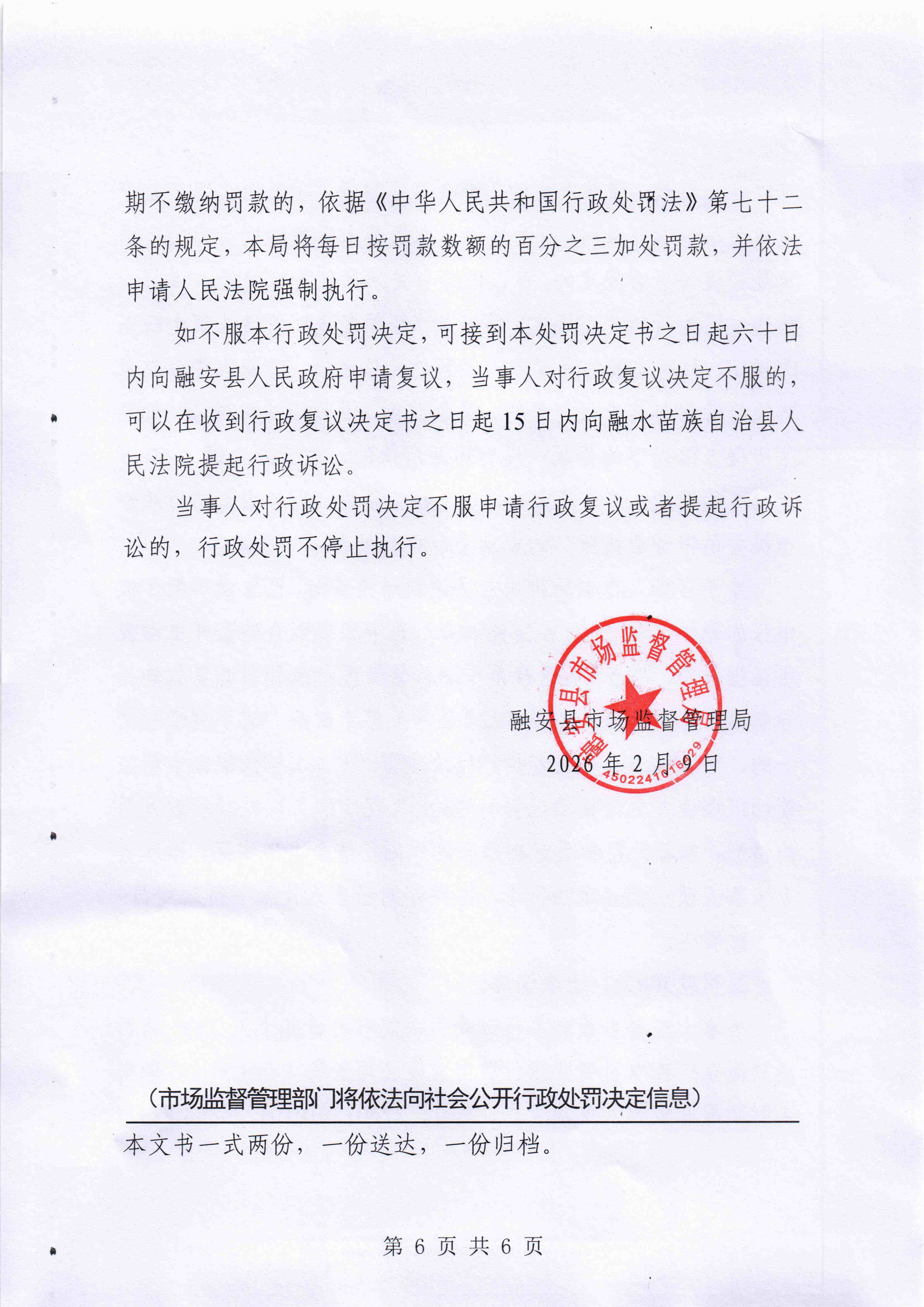 融安县市场监督管理局 行政处罚决定书融安市监处罚〔2026〕11号