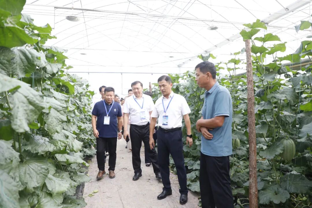 10月17日,柳州市人民政府副市长陈文敏(右二)一行到融安县长安镇现代设施农业蔬菜种植基地调研。(龙丹 摄)