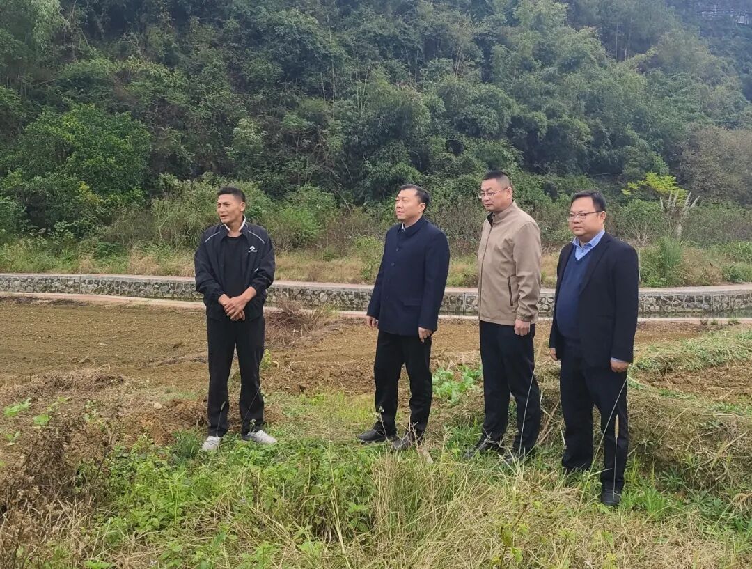 融安县委副书记、县长胡伟华(左二)实地察看泗顶镇三坡村耕地保护现状。(覃家宾 摄)