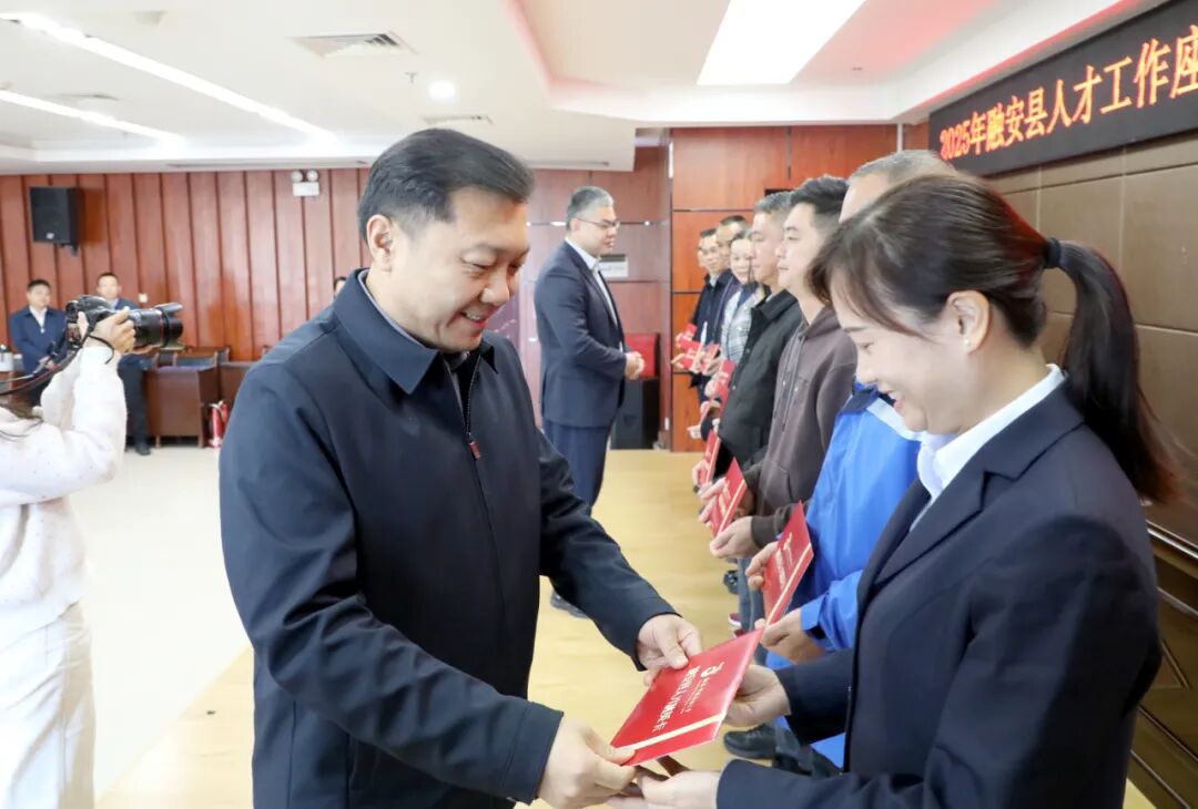 于福坚指出,融安县始终把人才工作摆在战略全局的突出位置,坚定不移贯彻党管人才原则,深入实施“人才强县”战略,扎实推进“智汇桔乡”人才工程,全力破解“引才、育才、用才、留才”难题,依托粤桂协作、“教共体”“医联体”等平台精准引才,在昆山举办工业专题培训等多元育才,人才工作取得实效。首次推出“融英卡”,构建人才“认定 — 服务 — 保障”闭环机制,旨在持续优化人才服务保障措施,让优秀人才在县内享受住房、医疗、生活等便捷服务,这既是深入学习贯彻习近平总书记关于人才工作的重要论述的具体实践,也是融安县实施“人才强县”战略、推进“智汇桔乡”人才工程的关键举措。