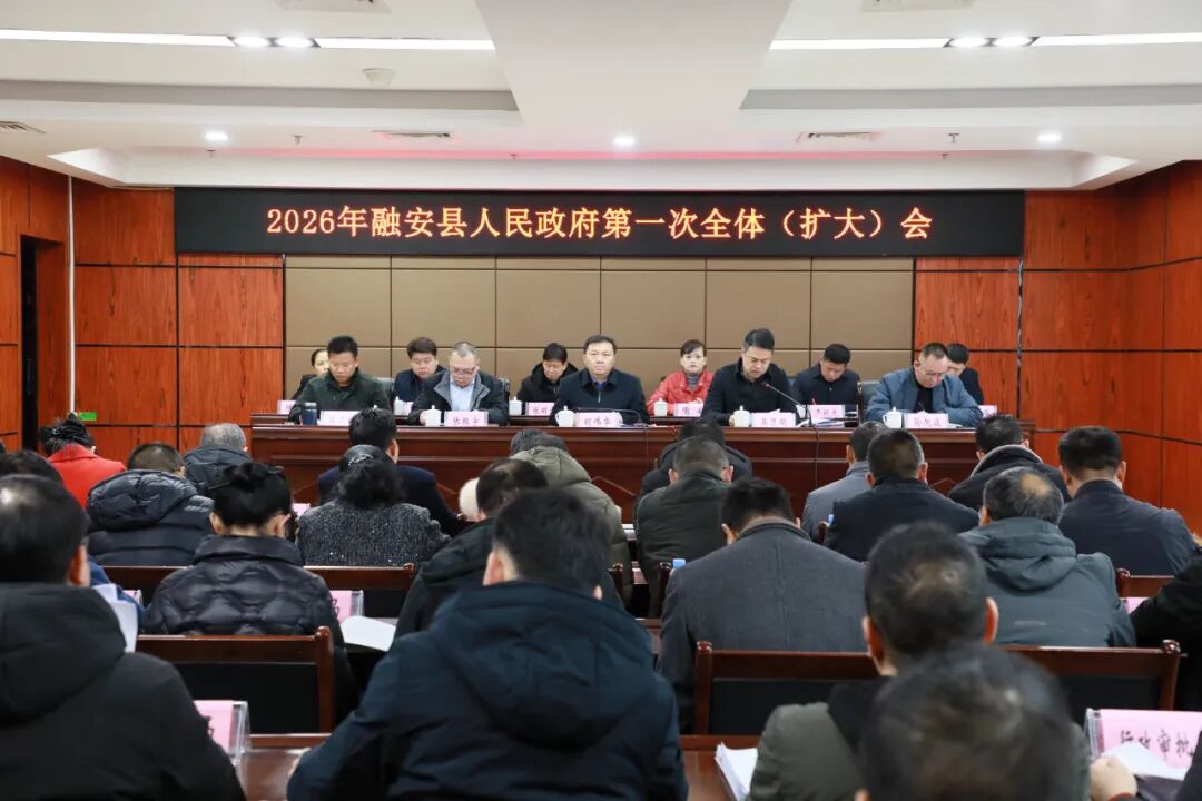 2月2日,融安县人民政府召开2026年第一次全体(扩大)会议,总结过往工作、谋划未来发展,审议通过全县经济社会发展系列重要文件,全面部署年度政府重点工作。县委副书记、县长胡伟华主持会议。