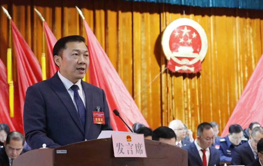 受县人大常委会委托,县人大常委会副主任蒋奎昌作县人大常委会工作报告。过去一年,在县委的坚强领导下,县人大常委会坚持以习近平新时代中国特色社会主义思想为指导,深入践行关于坚持和完善人民代表大会制度的重要思想,全面贯彻中央、自治区党委、柳州市委和县委各项决策部署,紧紧围绕全县工作大局,认真履行宪法和法律赋予的各项职责,守正创新、担当作为,圆满完成县第十八届人民代表大会第六次会议确定的各项任务,为奋力谱写中国式现代化融安篇章作出积极贡献。强化政治引领,在坚持和加强党的全面领导上彰显政治本色;聚焦中心大局,在依法行使决定权和任免权上展现务实担当;提升监督质效,在服务高质量发展和民生改善上实现更实作为;释放代表动能,在发挥主体作用推动履职尽责上绽放时代风采;淬炼履职根基,在加强自身建设打造高效机关上筑牢坚实支撑。