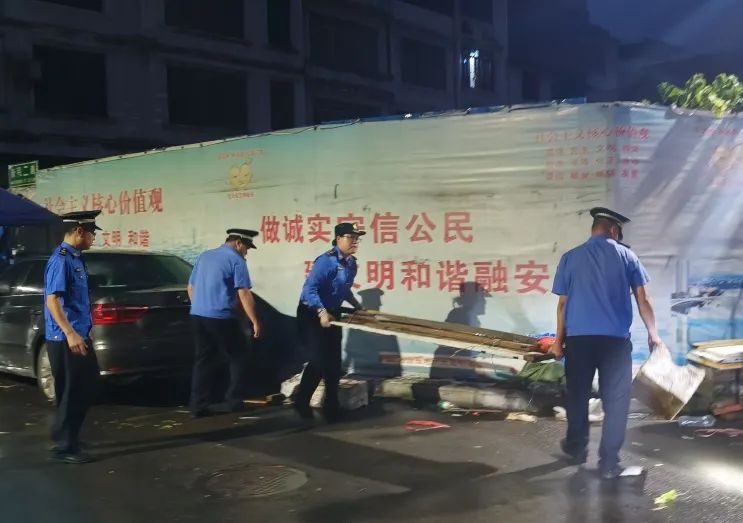 6月17日凌晨5:00时,全体执法队员集合,深入一线开展市容整治行动。行动中执法人员发现在融安县城河西老农贸市场、河东大万佳市场和康欣移民安置小区周边,有不少店铺和流动摊贩用木架、石墩、雨棚、广告牌等物品占据人行道和非机动车道,摊位杂乱无章,现场秩序混乱。执法队员们耐心引导店铺及摊贩规范经营,主动帮助他们拆除违规设施、清理杂物。对于个别拒不配合的经营户,依法依规进行处理,并再次向其详细解释整治工作的意义和要求。经过5个多小时的奋战,共规范占道经营行为30余起,清理违规摊位40多个,城区重点区域占道经营、乱堆乱放等现象得到了明显遏制,道路恢复畅通,市容环境焕然一新,赢得了过往市民的纷纷好评。