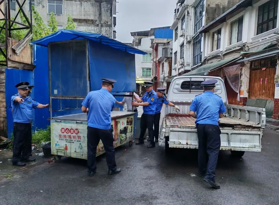 6月17日,融安县综合行政执法局执法队员正在开展市容整治行动
