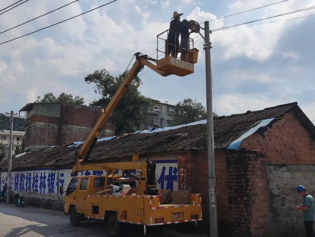 9月15日,融安县路灯管理站工作人员在新安村北府屯路段更换路灯