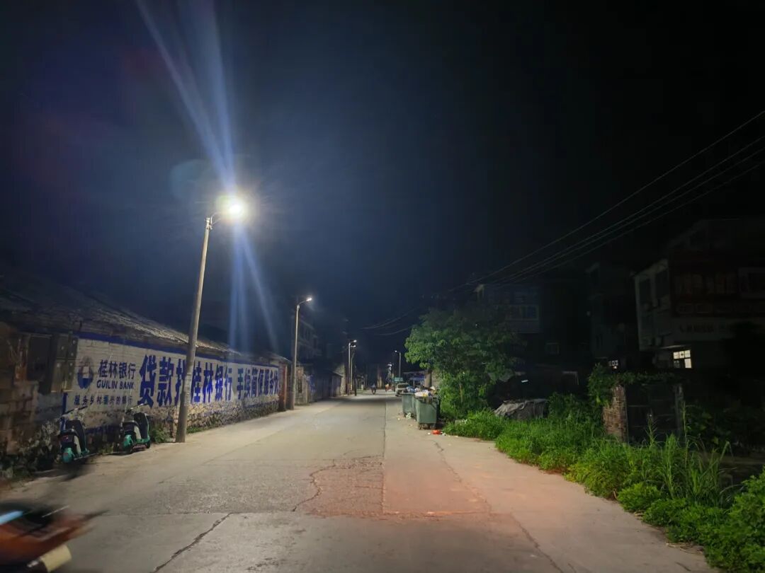 融安县长安镇新安村北府屯路段更换路灯后的亮化效果