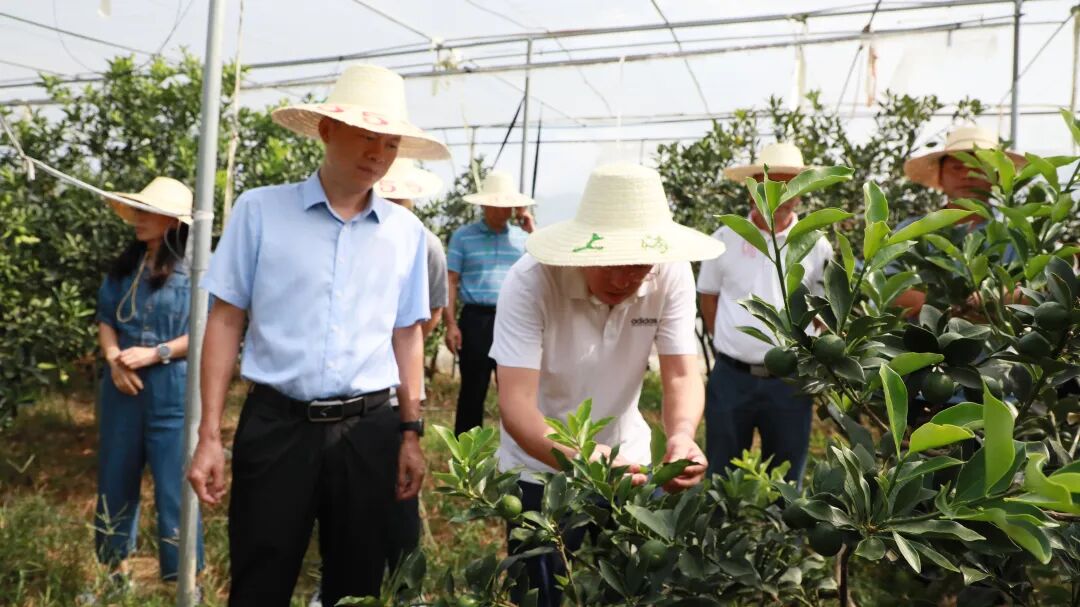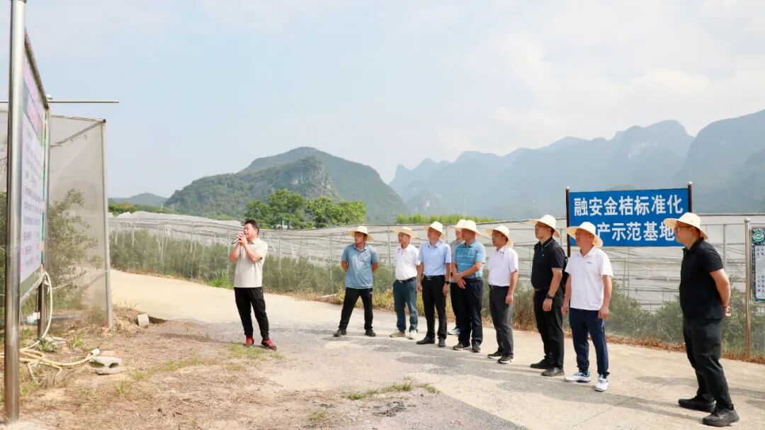 在融安县兴桔农场,自治区和柳州市帮扶专家开展融安县金桔产业发展项目指导。(方淑敏 摄)