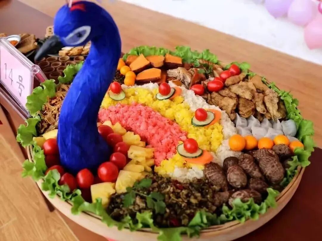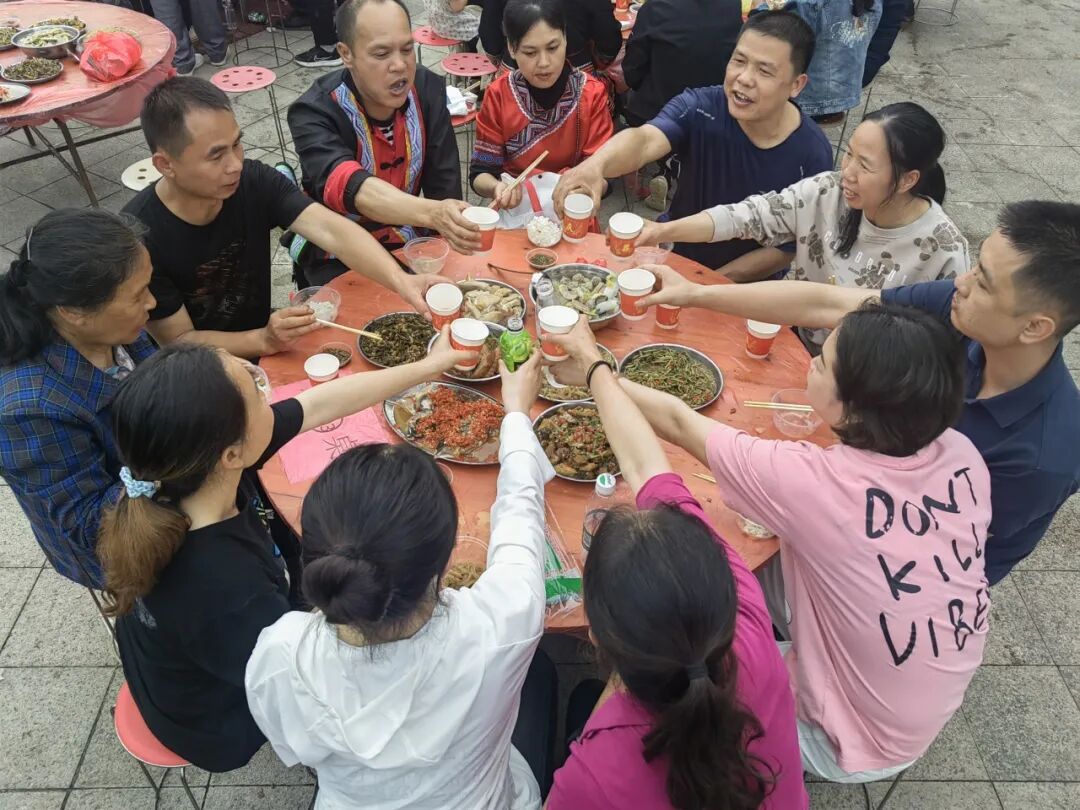 众多舌尖上的美食等你来品尝,众人共享美食的盛宴,热闹欢腾。