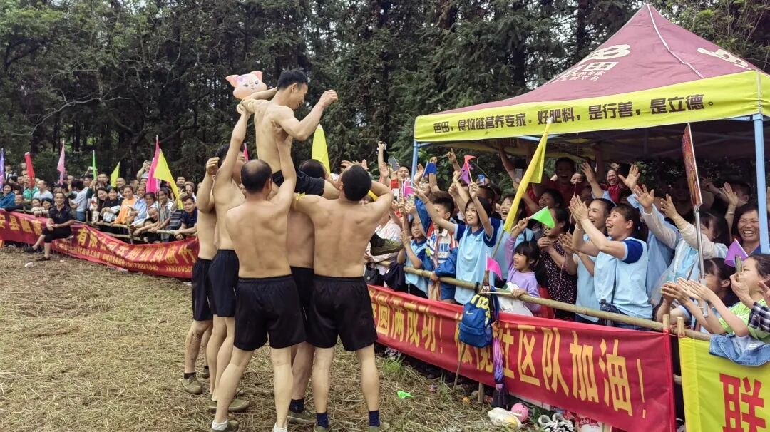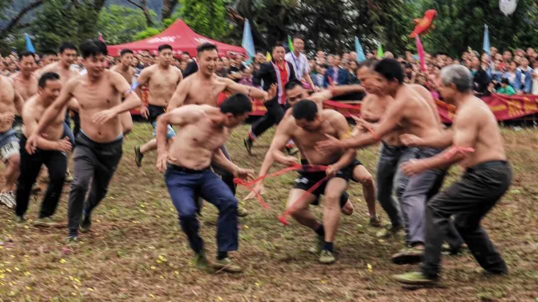 抢花炮。是一项具有浓郁民族特色的民间传统体育项目,由于具备了强烈的对抗性、娱乐性和独特的民族风情,因此被喻为“中国的橄榄球”。以村为单位(或几个村联合组队)参加比赛,每队队员10名,男女队分开比赛。