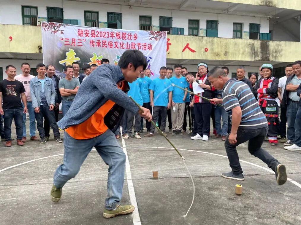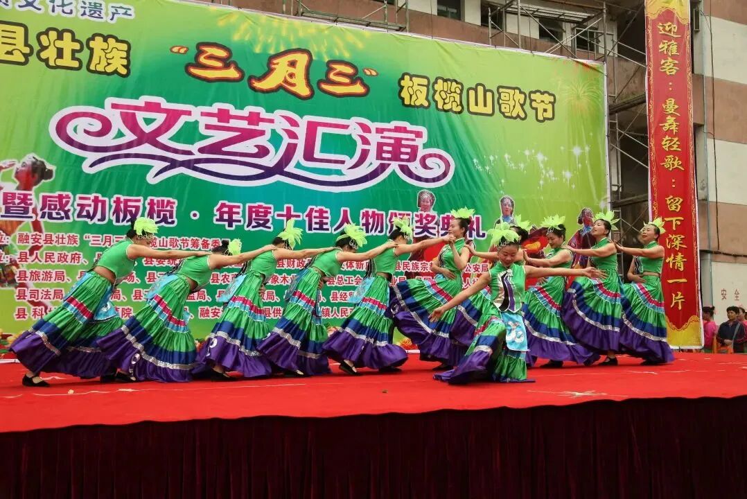板榄是融安县传承“三月三”活动历史最久,活动最丰富,规模最大的一个地方,“三月三”是板榄镇的传统“歌节”,曾经也称“坡会”“会期”,作为融安壮族人民的“三月三”会期有着悠久的历史,相传从清朝期间开始盛行。在万物萌发的春天,人们为了祈求一年的风调雨顺、五谷丰登,便在农历三月初三这一天,除举办传统祭祀活动外,人们自发举行山歌传歌+对唱、赛歌等具有当地风情的文娱活动。