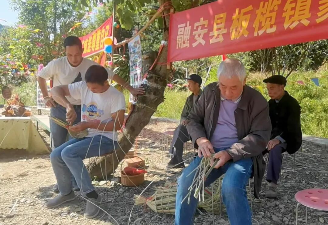 民间手工艺人数名在现场破竹篾、修篾、编织、整形,制作篮子、果盘、茶篓等。