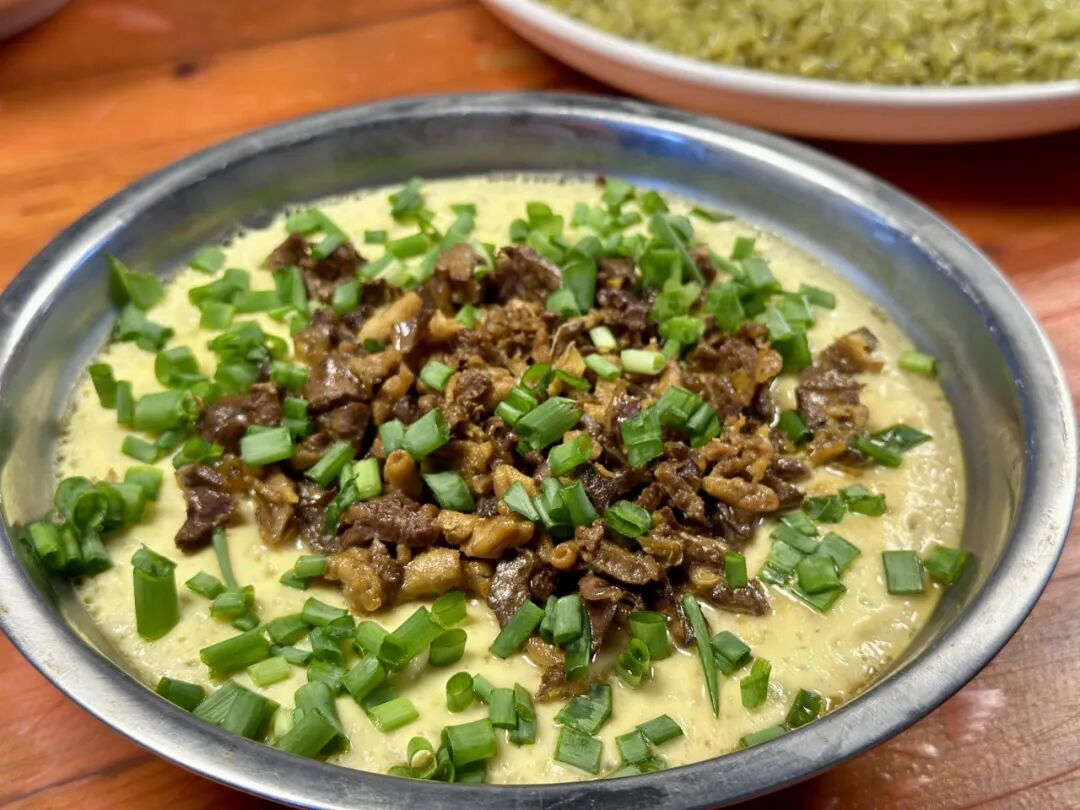 晚宴现场油茶自助,喝下一碗油茶,将壮寨人的热情整个暖进胃里,初觉是茶叶的淡淡清苦,回味便是甘醇鲜香,搭配香脆的米花油果,咬起来细碎作响,夹杂着油香,在这一刻就是彼此的灵魂伴侣。