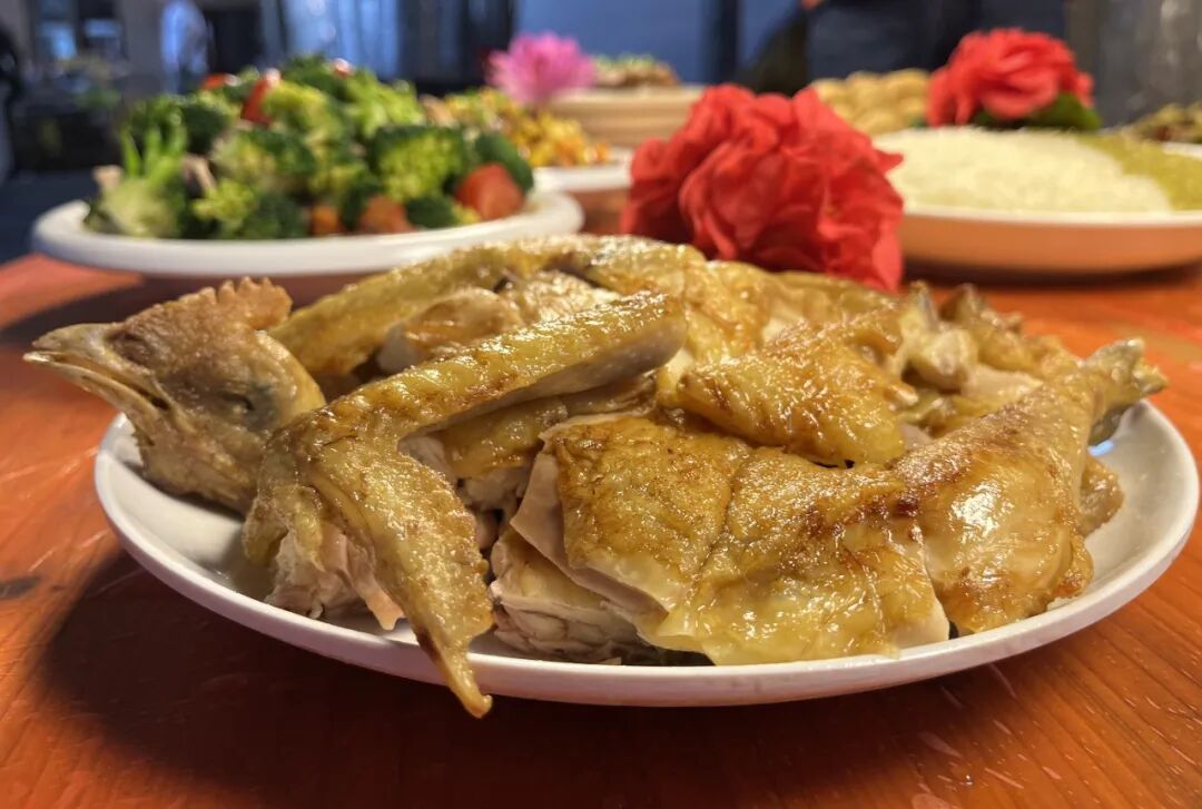 "无鸡不成宴",在中国人的饭桌上,鸡常常占据着最核心的地位,是餐桌上不可缺少的一道菜肴。选用雅瑶散养于山林之间的农家土鸡,将煮熟的土鸡淋上雅瑶特色的热葱油,再进行快速斩切、装盘,芳香四溢溢,香酥无比,既有经典烧鸡的风味,又保持了原有的嫩滑。