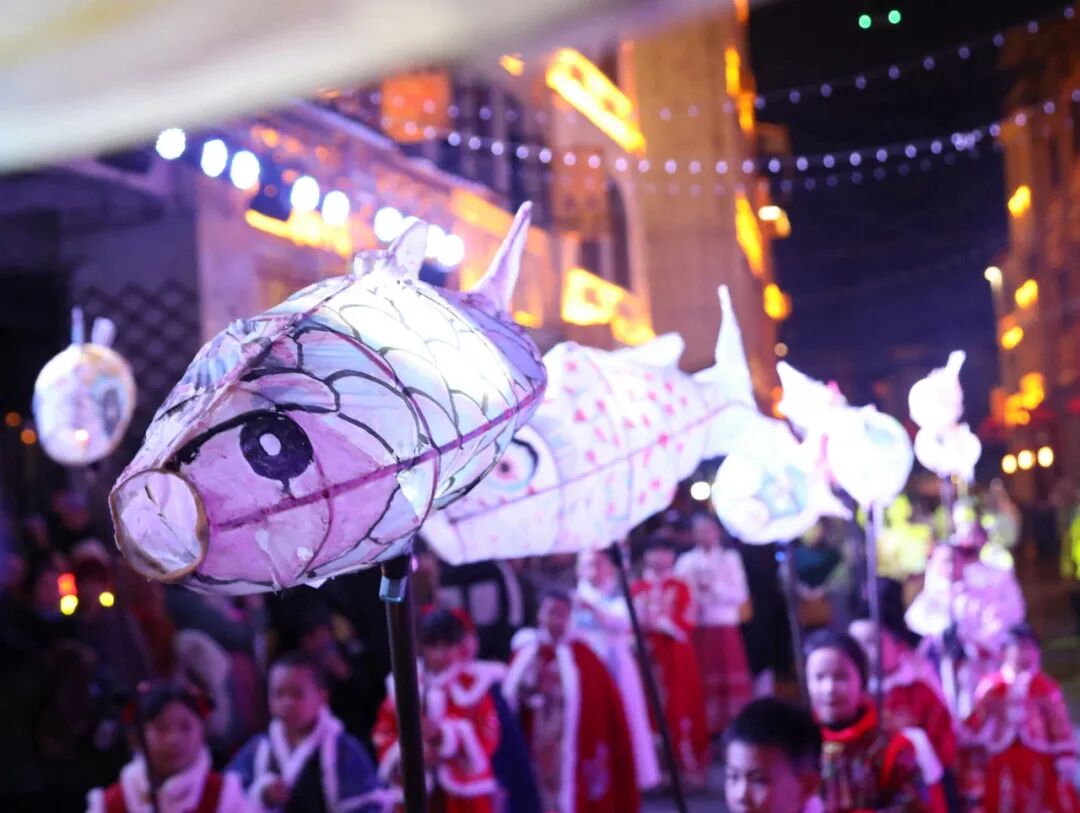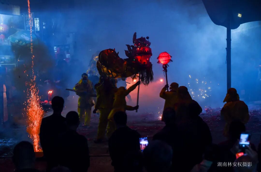夜放花千树,一夜鱼龙舞。走进“勇敢者的狂欢”,炮龙所到之处火光四射、炮声震耳、人头攒动,烟花缭绕中,炮龙时而腾飞跃起,时而蜿蜒盘旋,仿佛真的成为了传说中的神兽。闪闪发光的大鱼,从古坡的竹道上游过,红白相间的鳞片翕张,鱼身不时摆动,将把民俗中的中国式浪漫拉到极致!