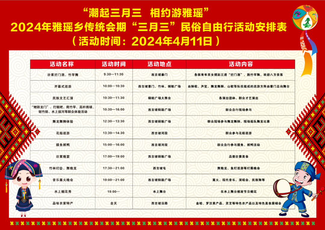 三月三 |高杆绣球、 “水果捞”争霸赛、打糍粑、水上拔河等体验活动